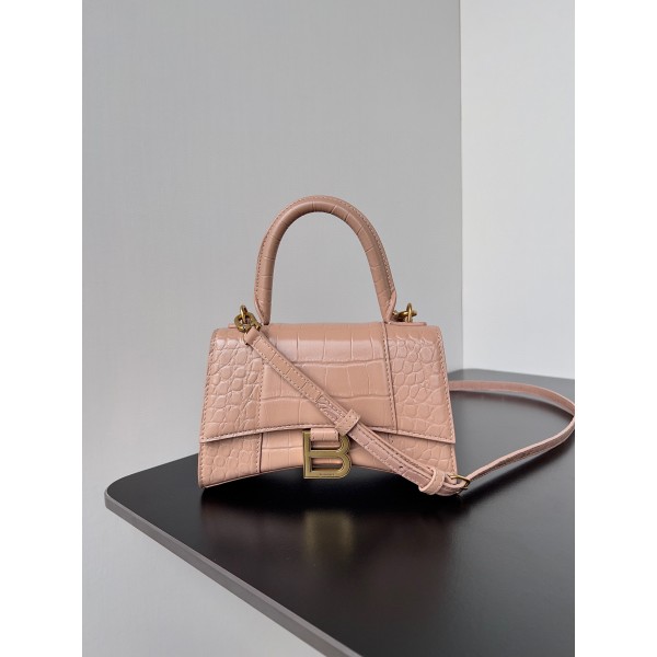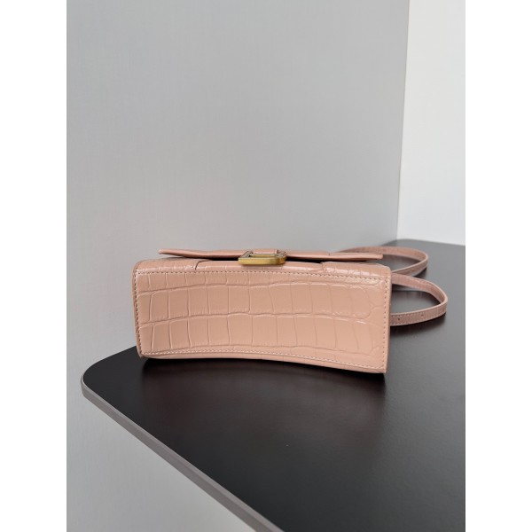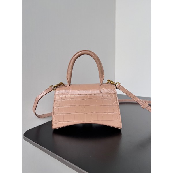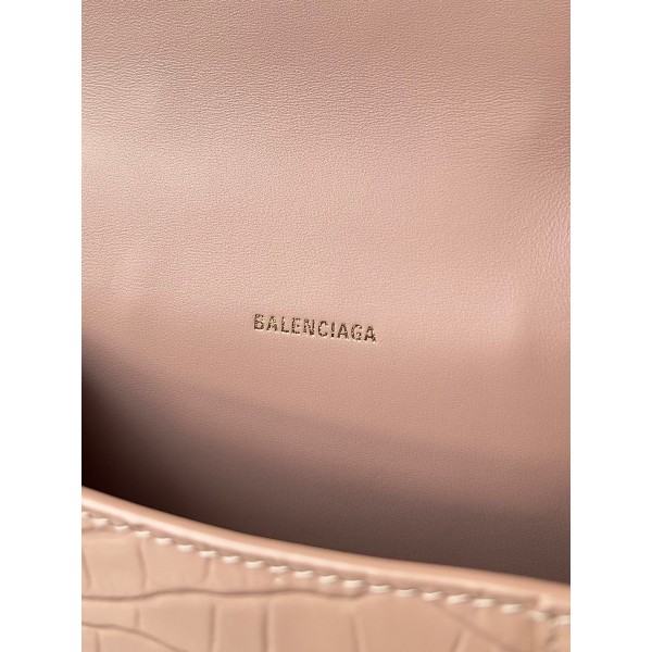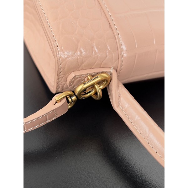 Balenciaga Hourglass Mini Handbag Crocodile Embossed Nude Powder