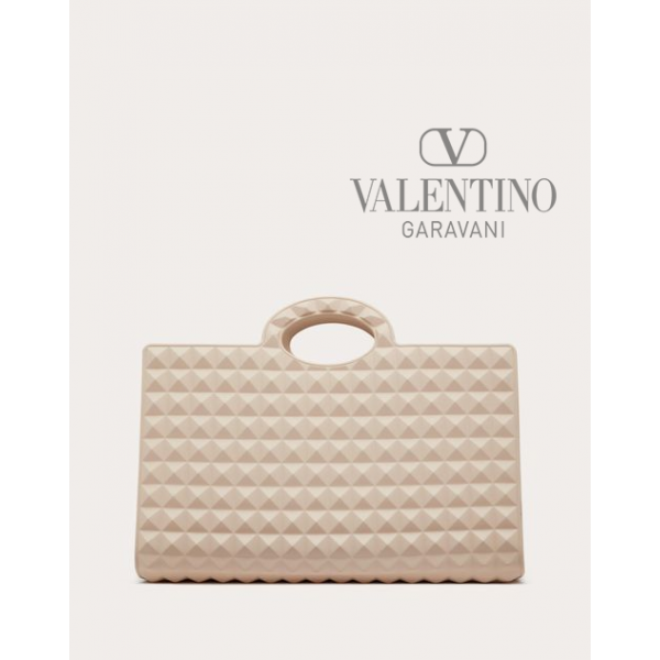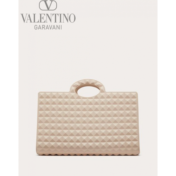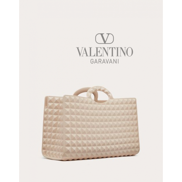 Valentino Garavani Le Troisième rubber shopping bag with studded pattern. The bag features shaped handles.