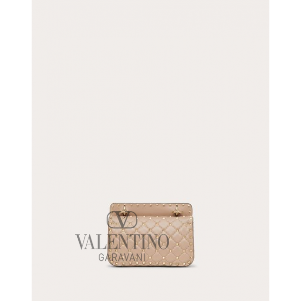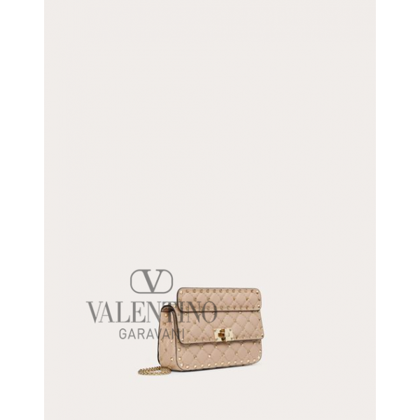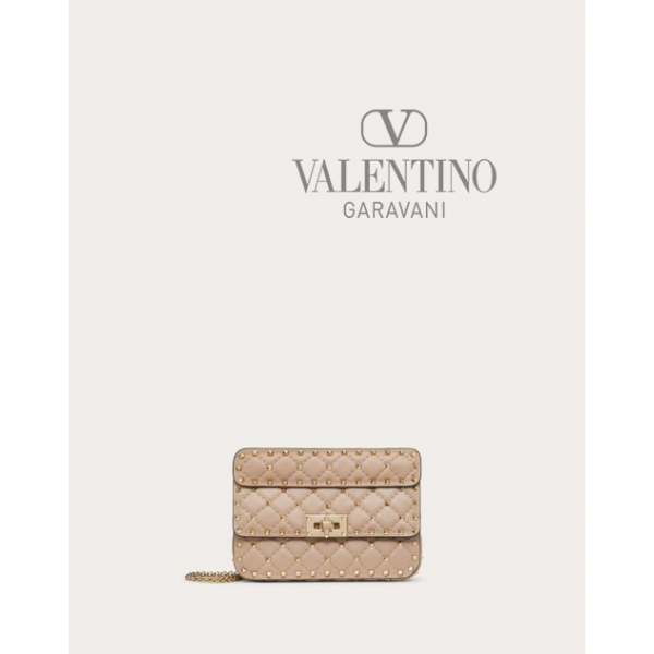 Small Valentino Garavani Rockstud Spike chain bag in supple lambskin Nappa. Quilted construction, embellished with small studs.