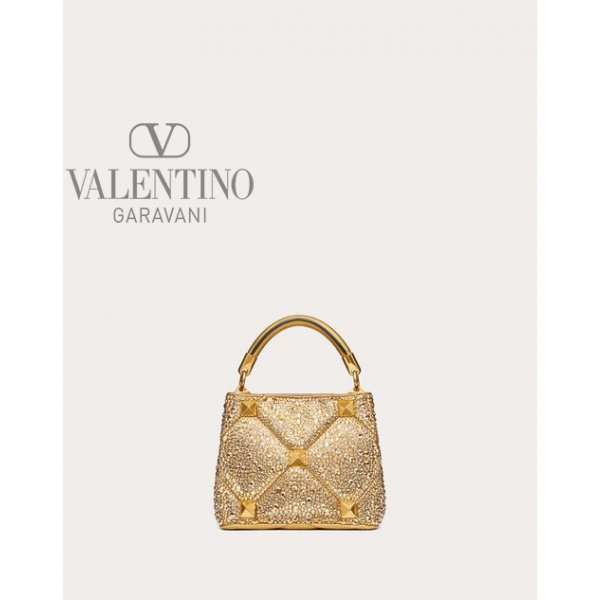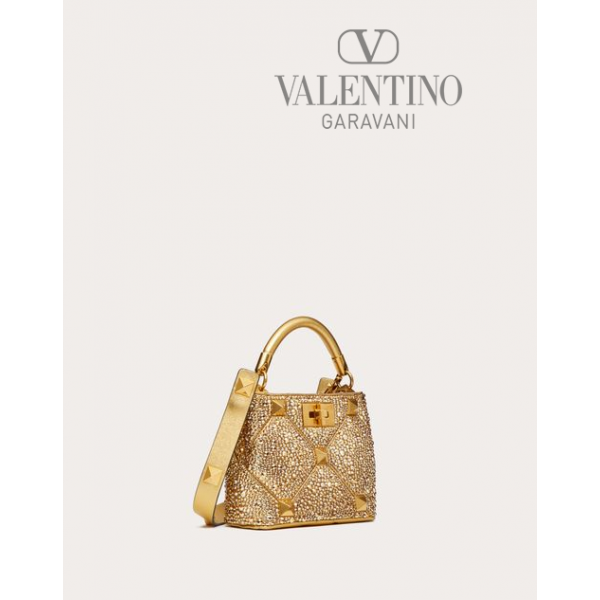 Shop replica valentino canada yorkdale Roman Stud Rhinestone Handbag for Woman in Antique Brass, Knockoff valentino Ottawa
