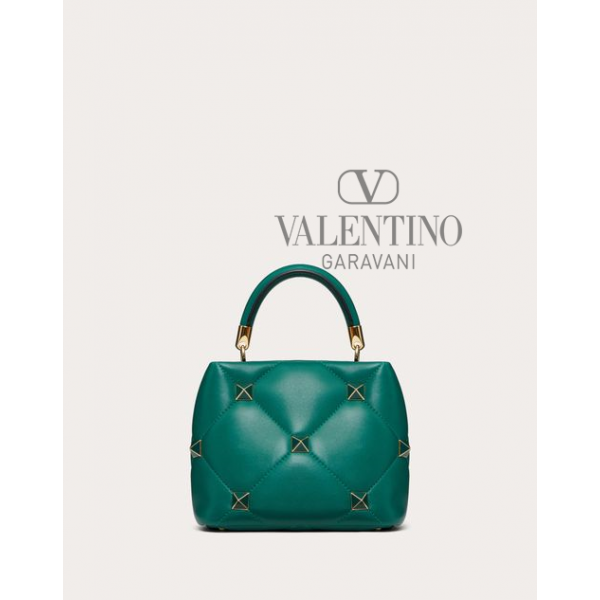 AAA quality fake valentino canada sale Small Roman Stud The Handle Bag In Nappa With Enameled Studs for Woman in Jungle, Top quality cheap valentino canada online
