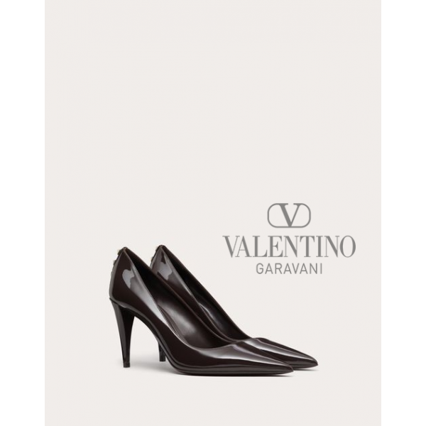 Shop fake valentino yorkdale toronto Rockstud Patent-leather Pump 90 Mm for Woman in Ebony, Buy fake valentino canada outlet