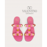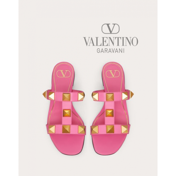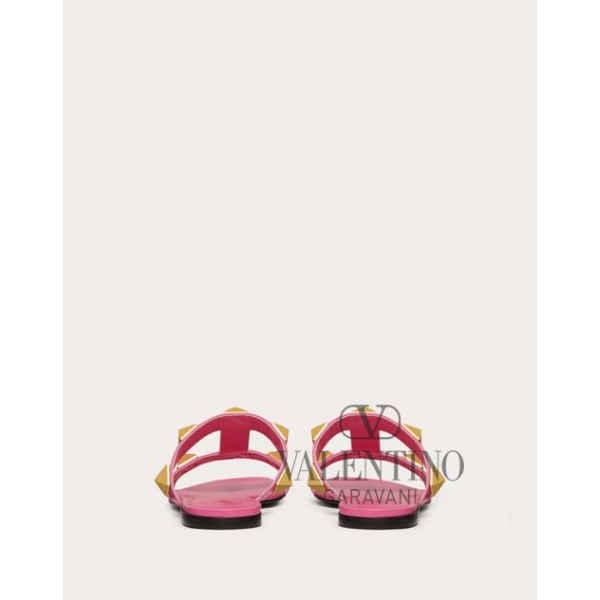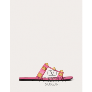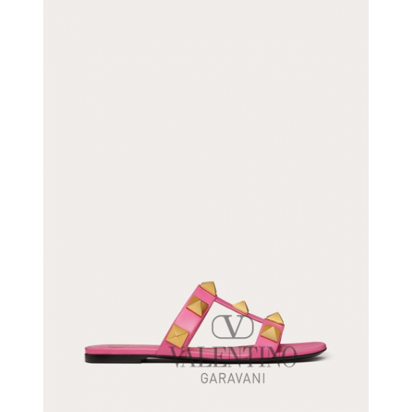 Shop replica valentino canada yorkdale Flat Roman Stud Calfskin Slide Sandal for Woman in Pink, Knockoff valentino Ottawa