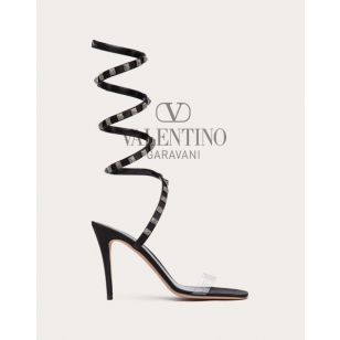 Valentino Garavani Rockstud sandal in satin and transparent polymer