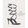 Knockoff valentino Ottawa Rockstud Satin Sandal 100 Mm for Woman in Black, high quality fake valentino canada sale