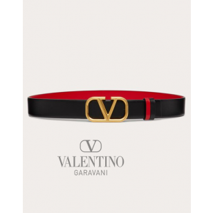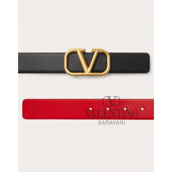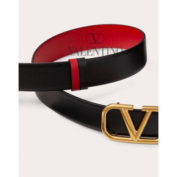 Shop fake valentino yorkdale toronto Reversible Vlogo Signature Belt In Glossy Calfskin 30 Mm for Woman in Black/pure Red, Buy fake valentino canada outlet