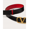 Valentino Garavani VLogo Signature reversible belt in glossy calfskin leather.