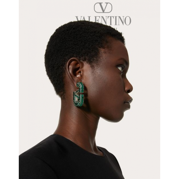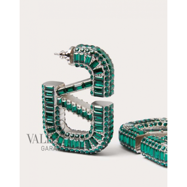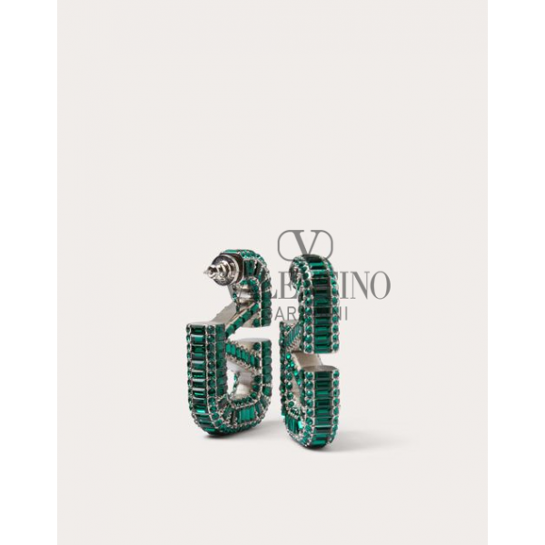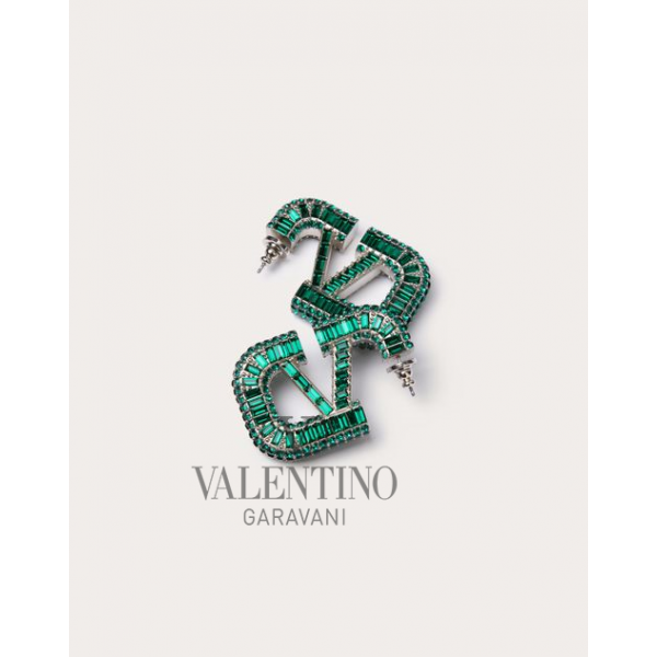 Replica valentino yorkdale toronto Vlogo Signature Earrings for Woman in Palladium/emerald, cheap knokcoff valentino canada outlet