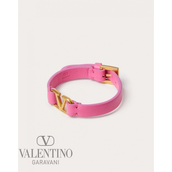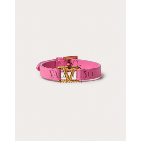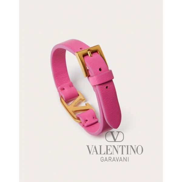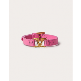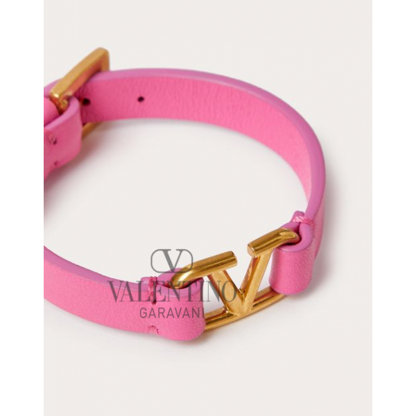 Shop replica valentino canada yorkdale Vlogo Signature Calfskin Bracelet for Woman in Pink, Knockoff valentino Ottawa