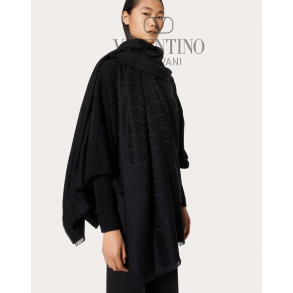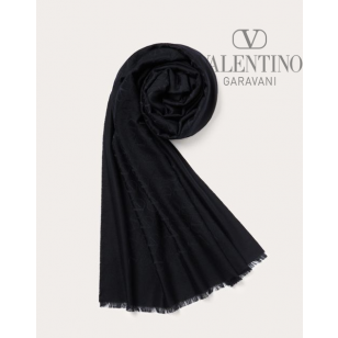 Cheap valentino canada stores Vlogo Signature Silk And Wool Stole 70x200 for Woman in Black, Real quality fake valentino canada