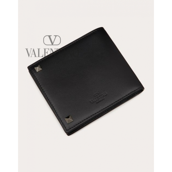 Fake Valentino toronto Rockstud Wallet for Man in Black, cheap fake valentino canada store