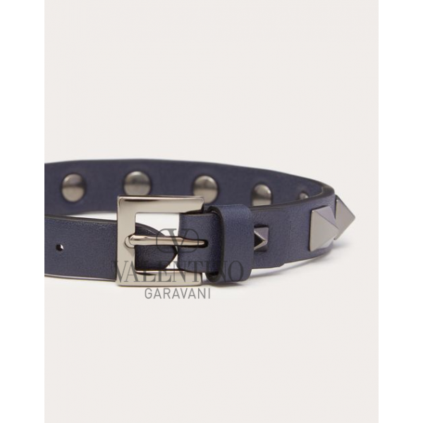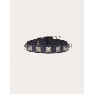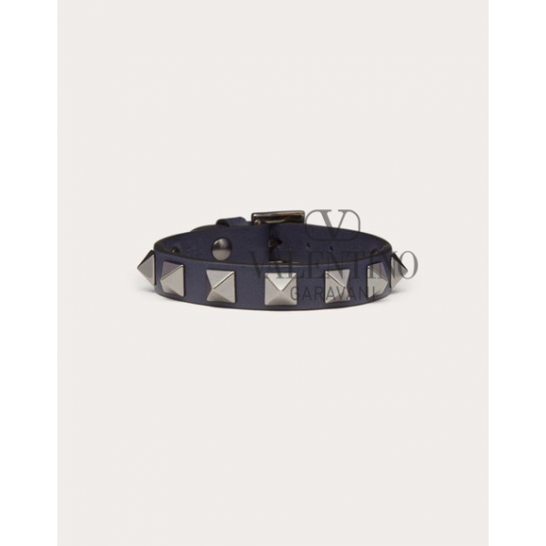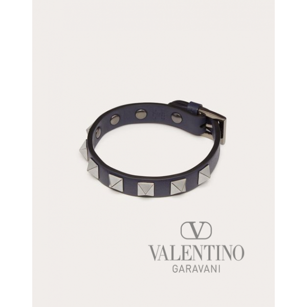 Shop replica valentino canada yorkdale Rockstud Leather Bracelet With Ruthenium Studs for Man in Marine, Knockoff valentino Ottawa