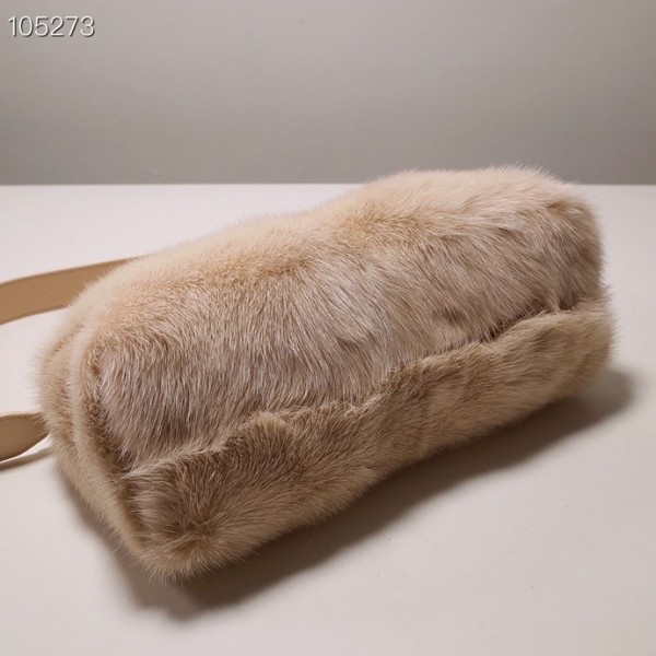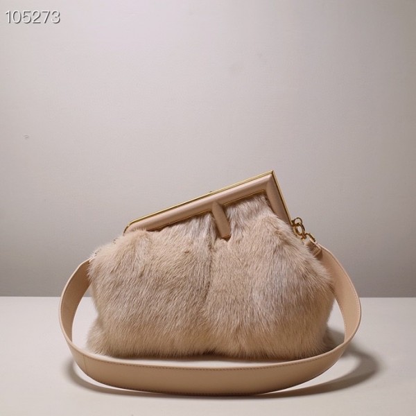 Made of soft mink with oversized metal F clasp bound in tone on tone nappa leather.