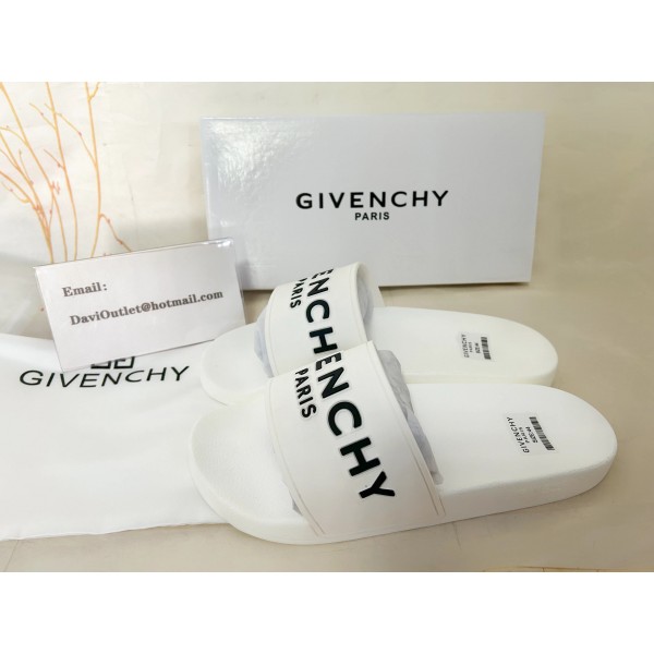 Givenchy Logo Embossed Rubber Pool Slides Sandals White
