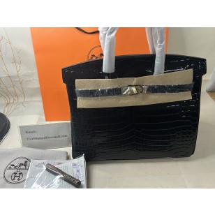 Replica Hermes Birkin 30cm 35cm Bag Alligator Leather Gold Hardware Black