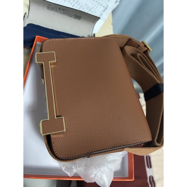 Hermes Geta Caramel Chevre Mysore 20cm Gold Hardware