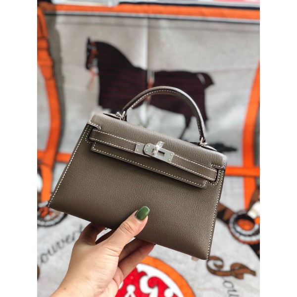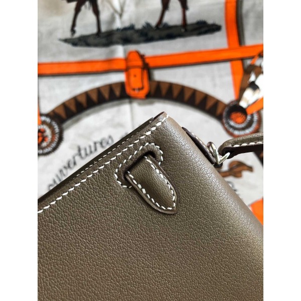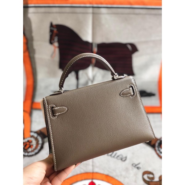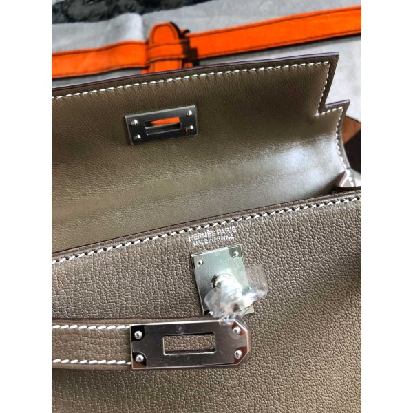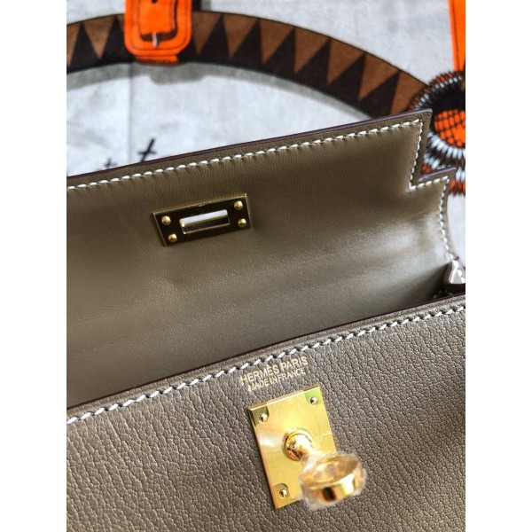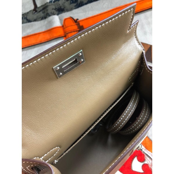 Fake Hermes Mini Kelly II Bag Chèvre Mysore Leather Etoupe