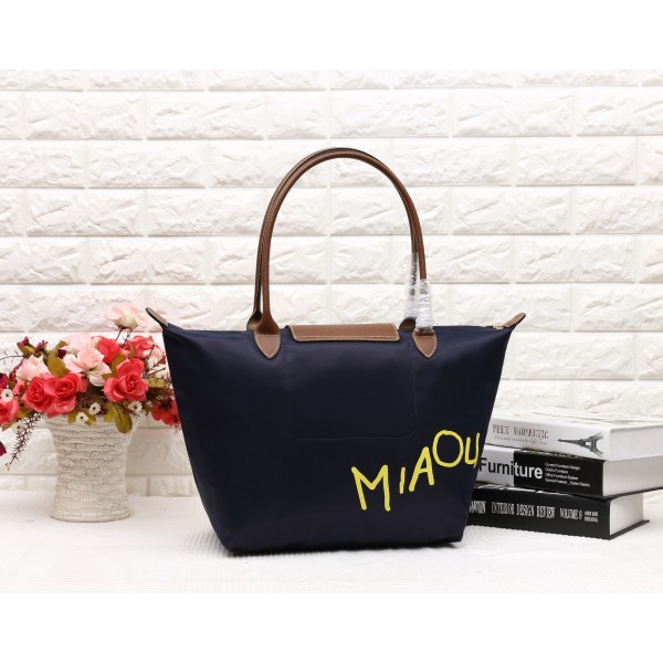 Fake Longchamp Le Pliage Miaou Cat Large Tote Bag Navy Blue