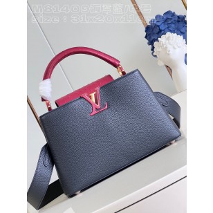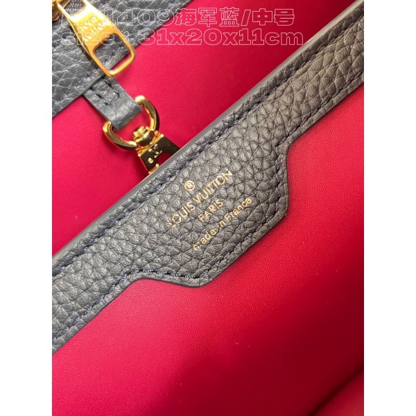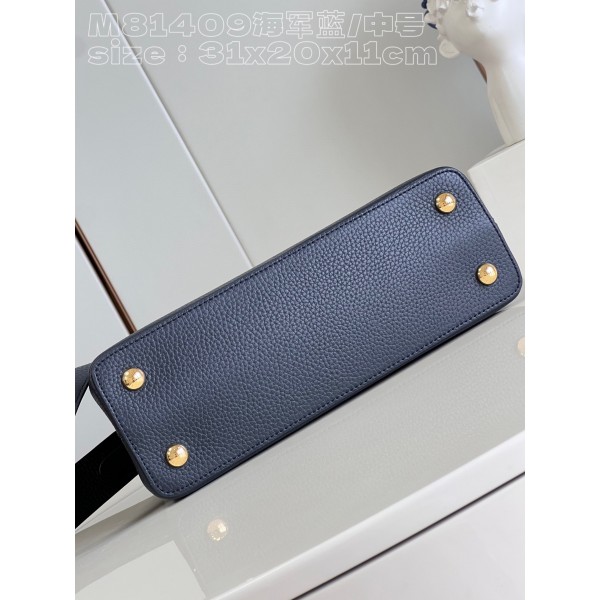 Fake Louis Vuitton Capucines Taurillon Studded MM Navy Blue
