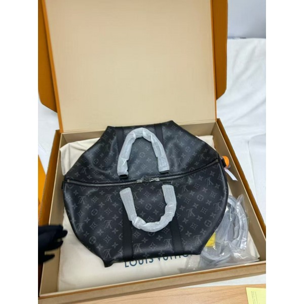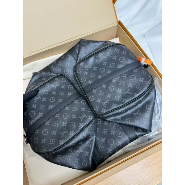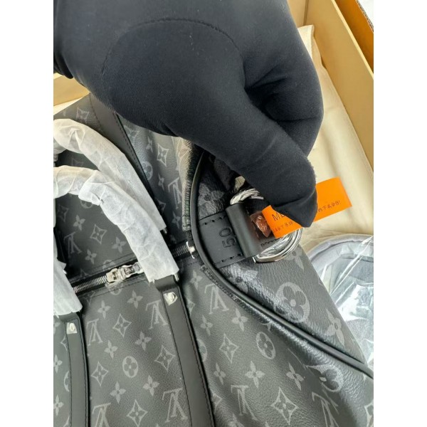 Louis Vuitton Keepall 55 Bandouliere Monogram Eclipse Travel Bag Black