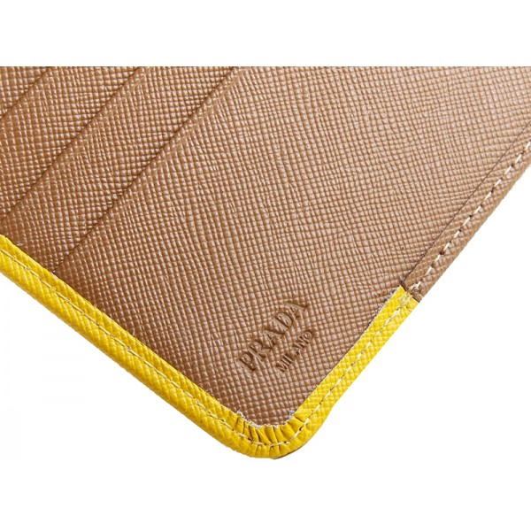 Fake Prada Saffiano Leather Tri -Fold Wallet Yellow With Khaki