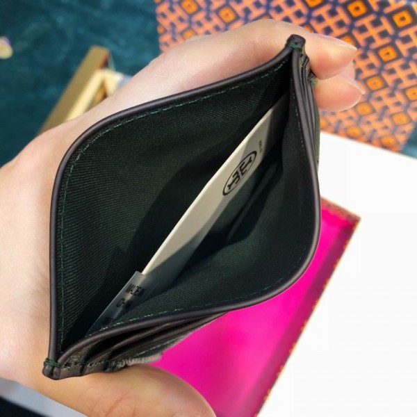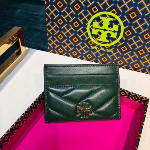 Discount Tory Burch Kira Chevron Card Case Green Black Outlet