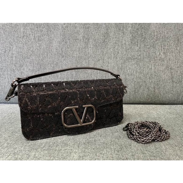 Valentino Garavani Locò Toile Iconographe Shoulder Bag Black