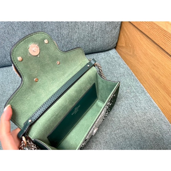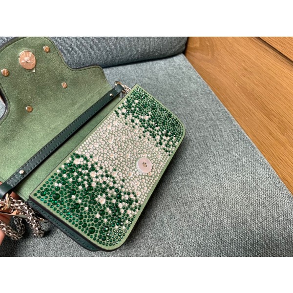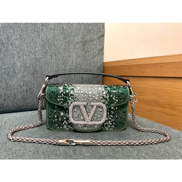 Discount Valentino Garavani Small Locò Shoulder Bag With Rhinestones Green